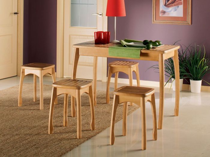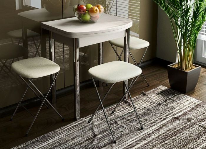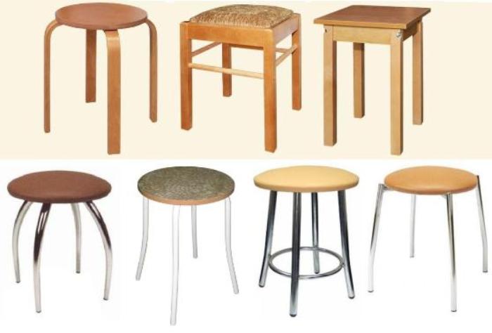 For small apartments, folding stools are suitable, which can be easily hidden in a closet.