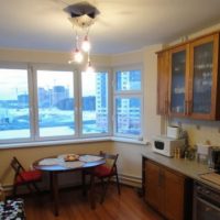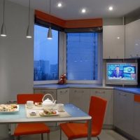 P-44T structures are considered complex in design, due to the presence of an architectural ledge. Designers continue to develop new, interesting options that are suitable for any occasion. Photos with descriptions on the Internet, as well as in numerous print media, will help create a dream kitchen in a room with a bay window, half bay window.