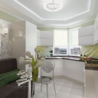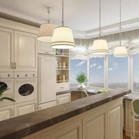 The layout of the modern kitchen with the p44t bay window is carried out in very different styles: these are classic and modern, Provence and loft, hi-tech and minimalism. Each style is characterized by a specific color scheme, materials, decorative elements.