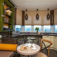 - 1 Features of the layout of the kitchen with a bay window