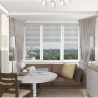 High-tech decoration is carried out mainly in cold colors. Of materials, chrome metal, patterned and transparent glass are preferred. Bay windows here are decorated with silver or gray-blue blinds