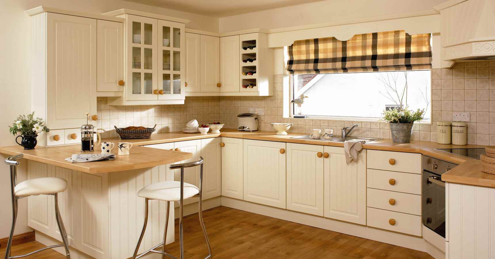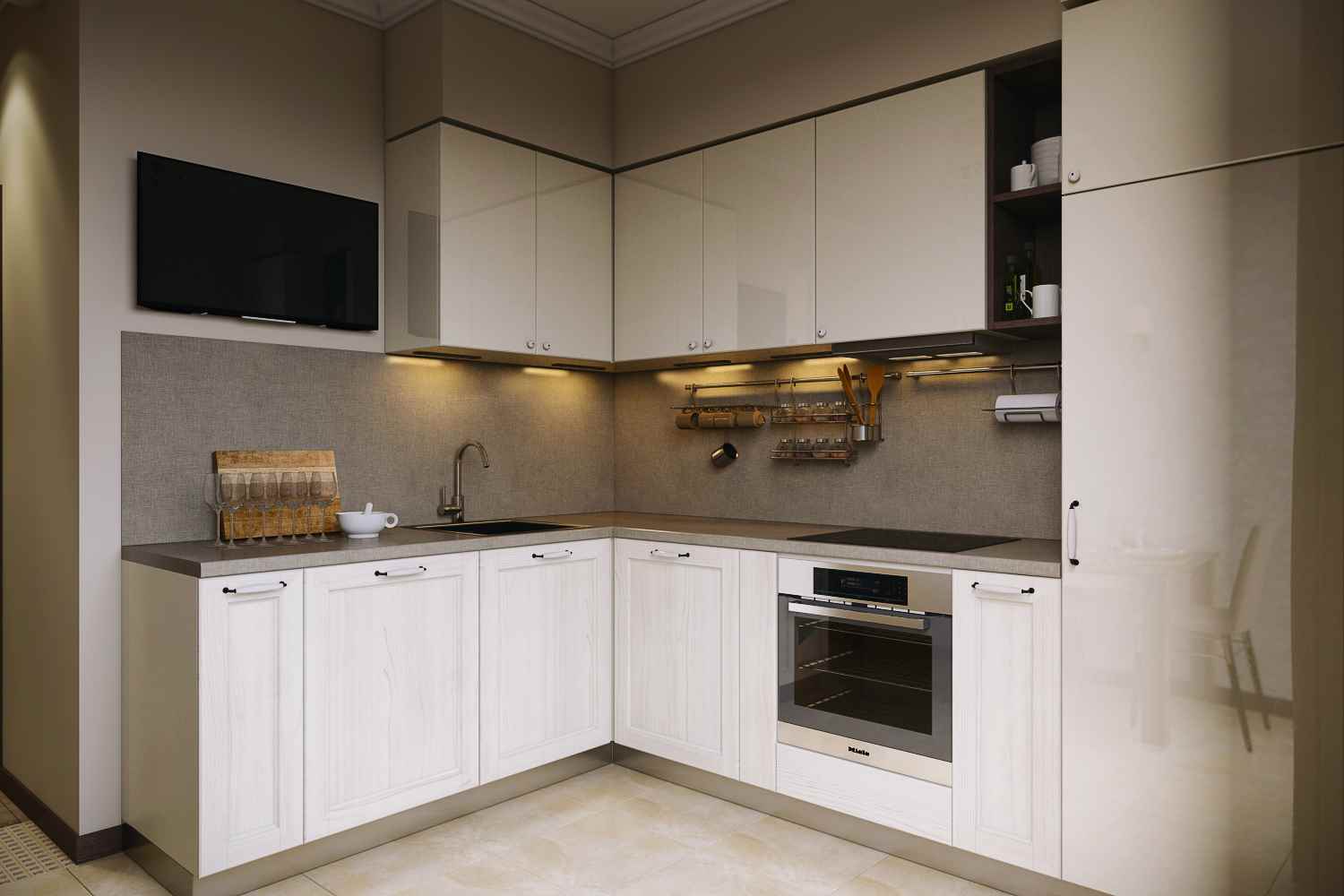 For small kitchens, a L-shaped set is often used.