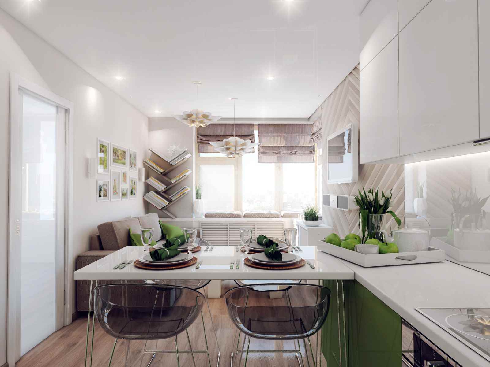 - If a family doesn’t decide to “have a meal” in the kitchen for a long time together, everyone has their own life schedule and place for food, then the dining area is not needed.