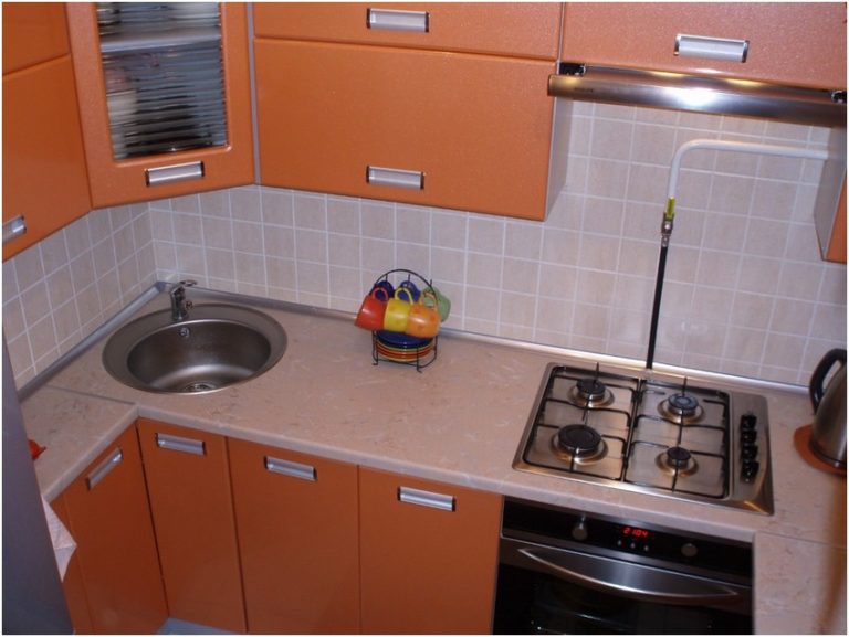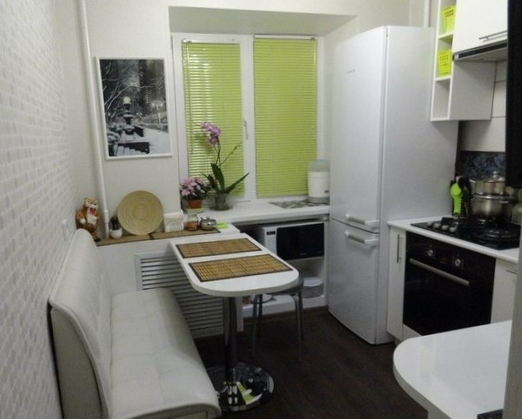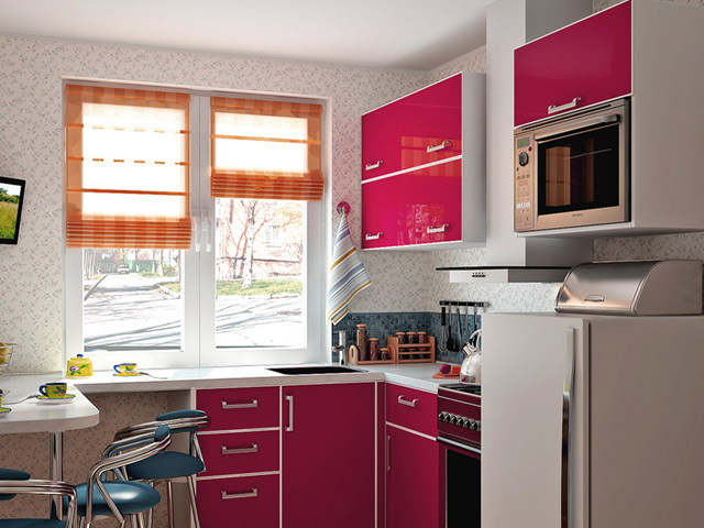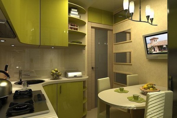 Furnitureas for any miniature the kitchen, it is better to choose with a glossy finish. The expediency of such a decision was indicated above.