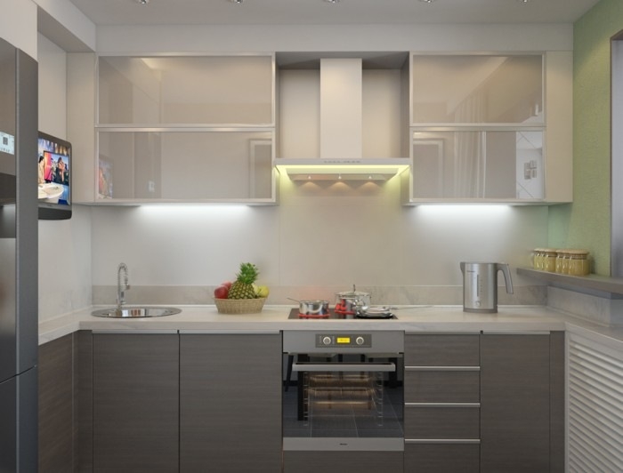 Pondering layout small-sized the kitchen, I always want to use every centimeter with maximum benefit. On a photo represented by kitchendecorated with using three leading colors: whitegray and beige.