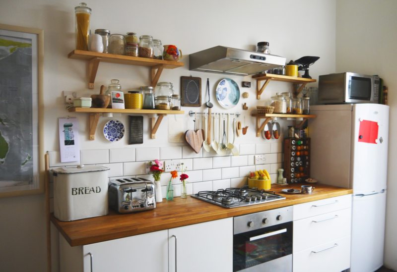 | High tech | Style also minimalist in combination with pure bright flowers. Hi-tech is distinguished by various communications left in sight that are used as decor (water pipes, gas pipes, hoods) | A lot of glass, metal and mirrors, built-in appliances.