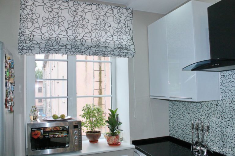 The main source of light is the window, so curtains will have to be excluded. Be sure to have a central chandelier with adjustable brightness and illumination work surface.