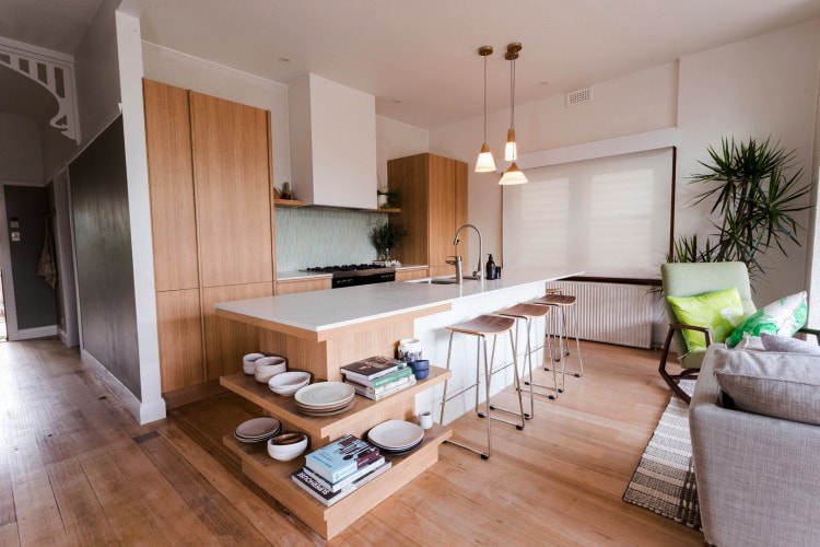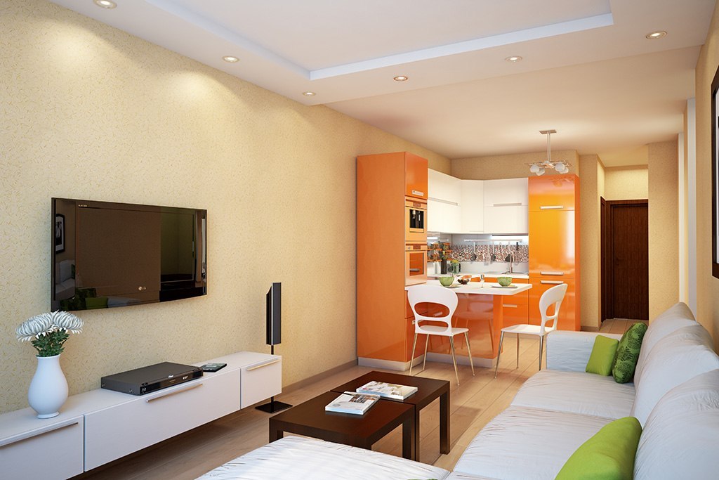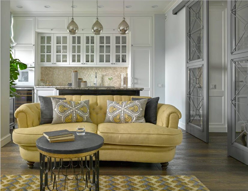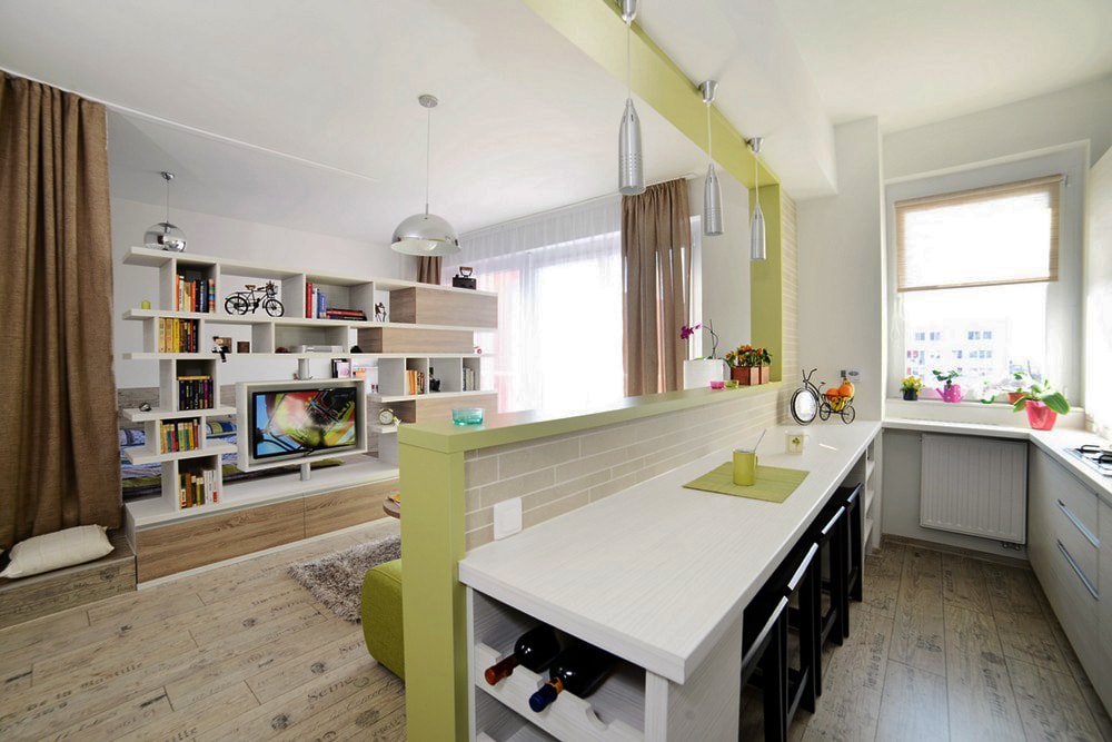 The union will be a great option for sociable individuals who can simultaneously do business in the kitchen and talk with guests and family members in the living room.