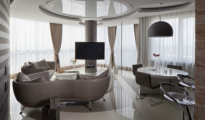 - zoning is made quite clear, but the space should maintain maximum integrity, a unified interior style;