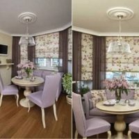 The place of eating in the bay window area is made out by a built-in or free-standing table of a suitable shape. This allows you to enjoy the view from the window while eating. If desired, a semblance of a bar counter is equipped here - often it is combined with an extended window sill.