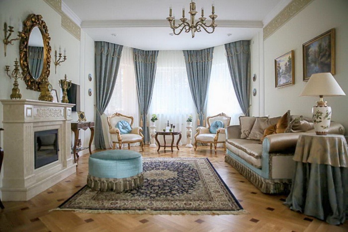 In the design of bay windows, special attention should be paid to the choice of curtains.