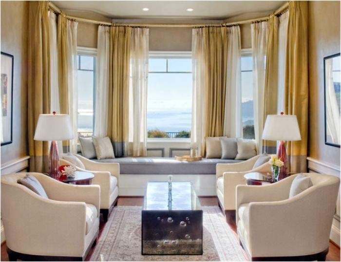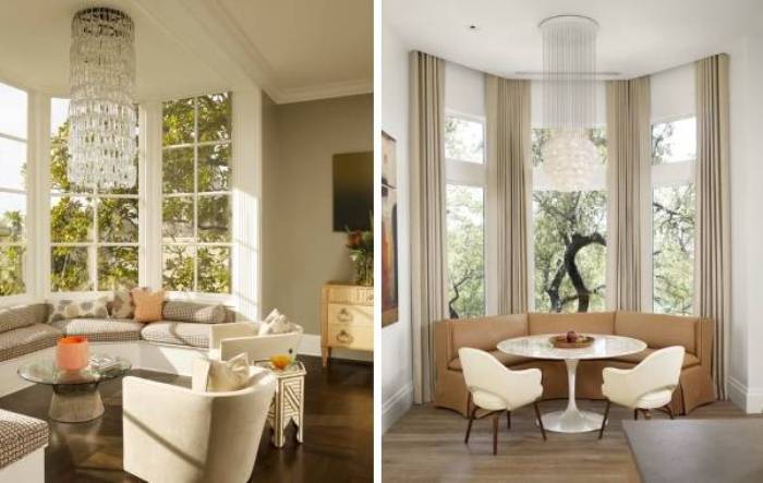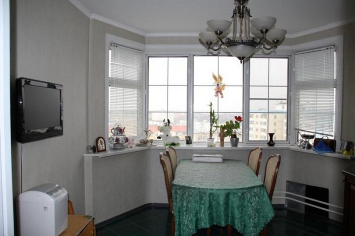 Tip. If the bay window is located on the "hot", sunny side, for greater comfort it is advisable to draw it with curtains or blinds.