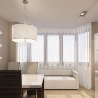 A feature of the described area is that there are large windows and a lot of light, because almost any combination of colors is acceptable - the choice depends on the planned interior style. It should be borne in mind that dark tones visually hide the area of the room, light tones expand it.