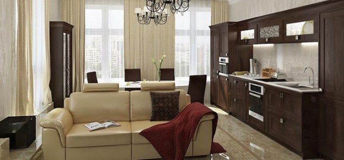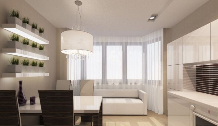 - 3 Pros, cons of the kitchen-living room interior with bay window
