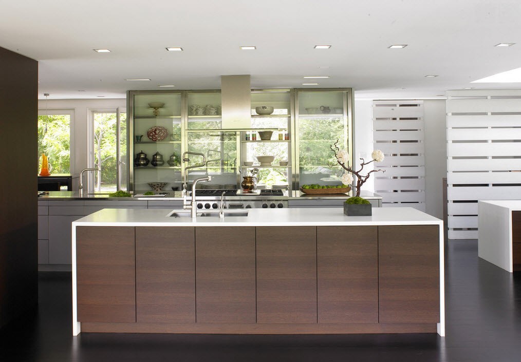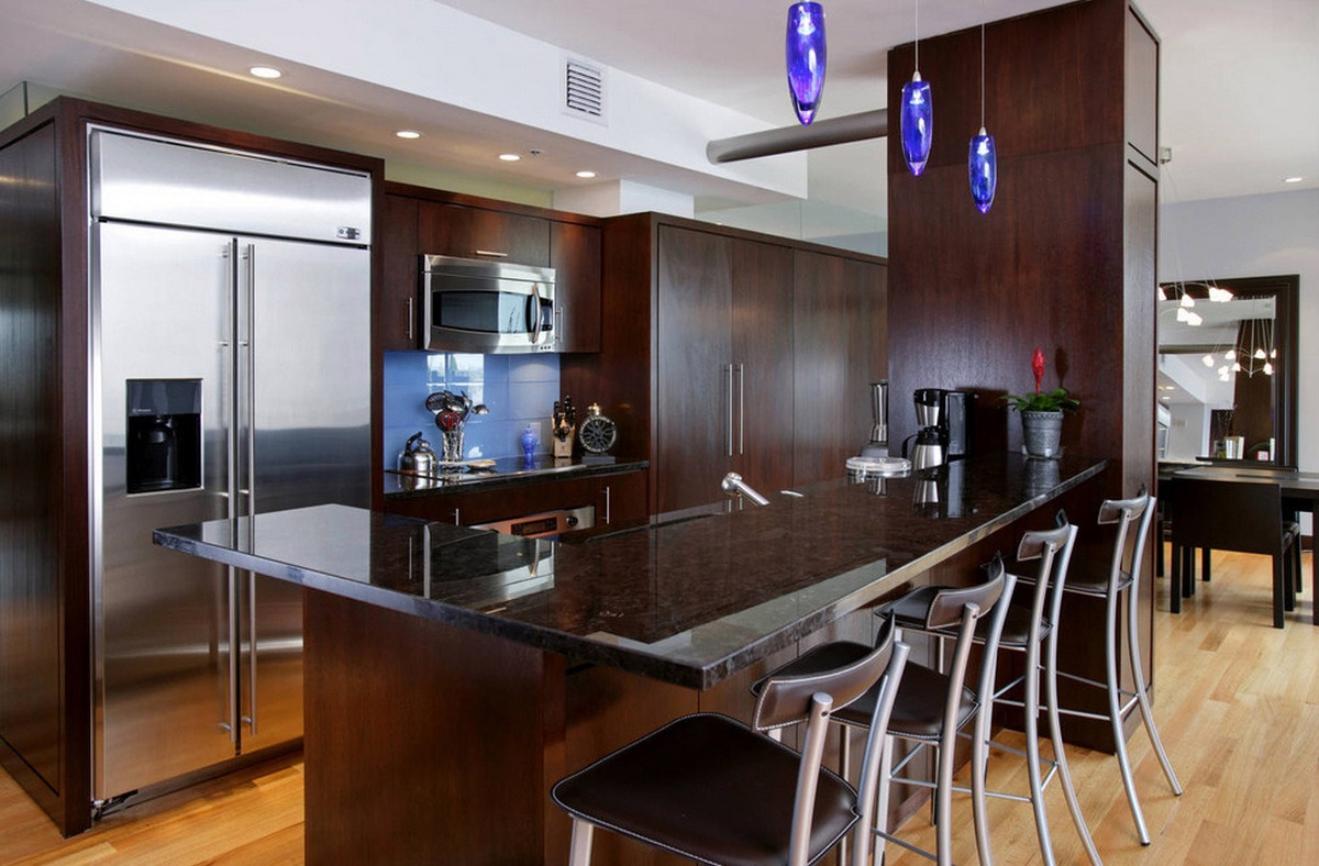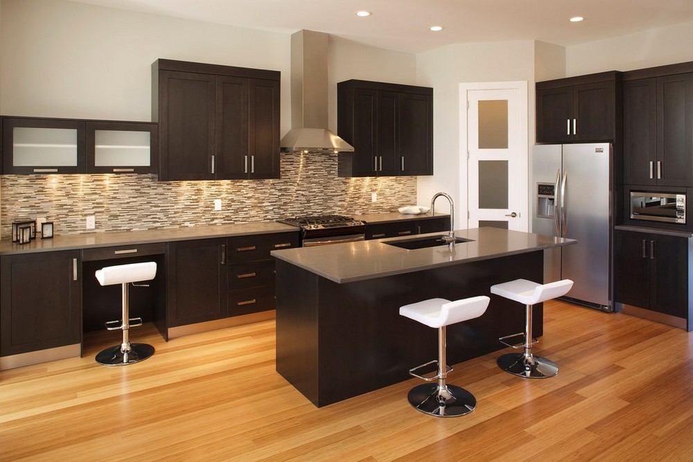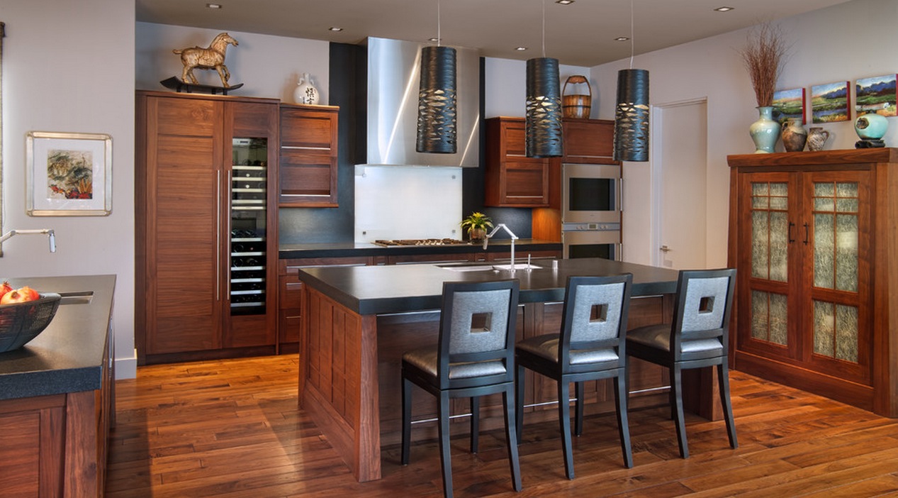 Whatever style or a color scheme has not been selected for design with using wood at kitchen wenge room will always look cozy and modern. Also dark shades always considered very practical. The main thing: carefully consider each element the kitchen, Decoration Materials.