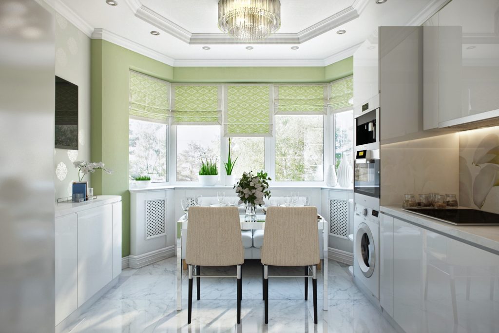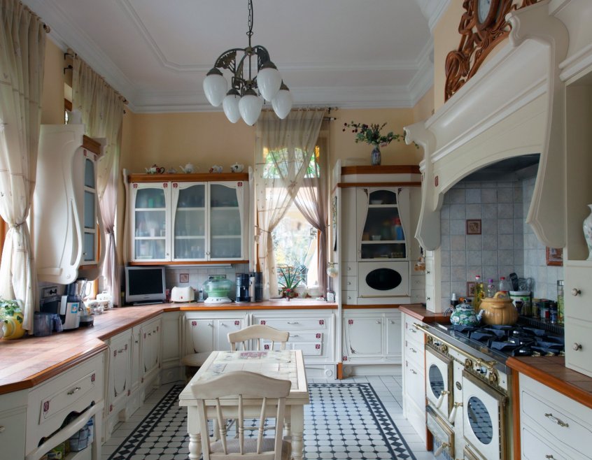 In the vast majority of cases, the interior of the kitchen comes down to either installing a sink by the window or a table.
