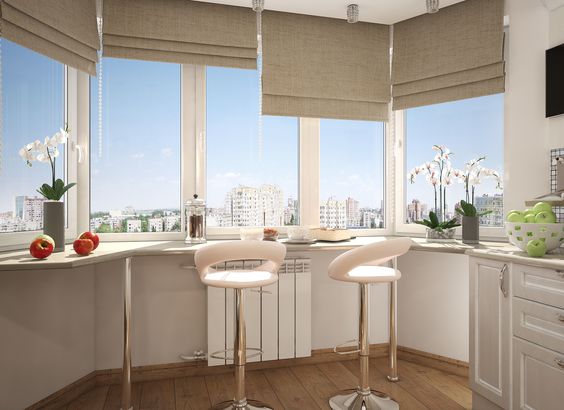 The advantage of such a design is its functionality, and a smooth visual connection of the facade with the ceiling cornice, making the ceiling seem somewhat higher.