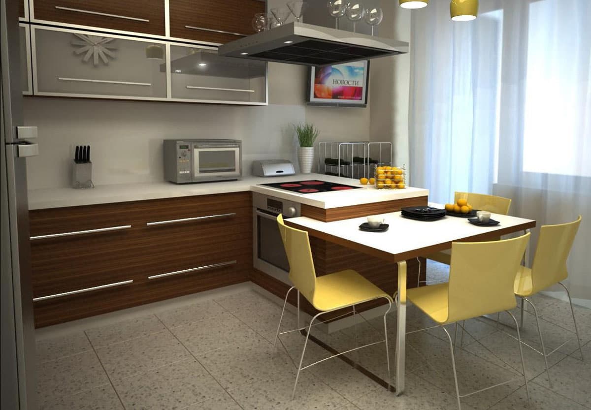 Depending on the area of the room, it is necessary to select and layout kitchen set.