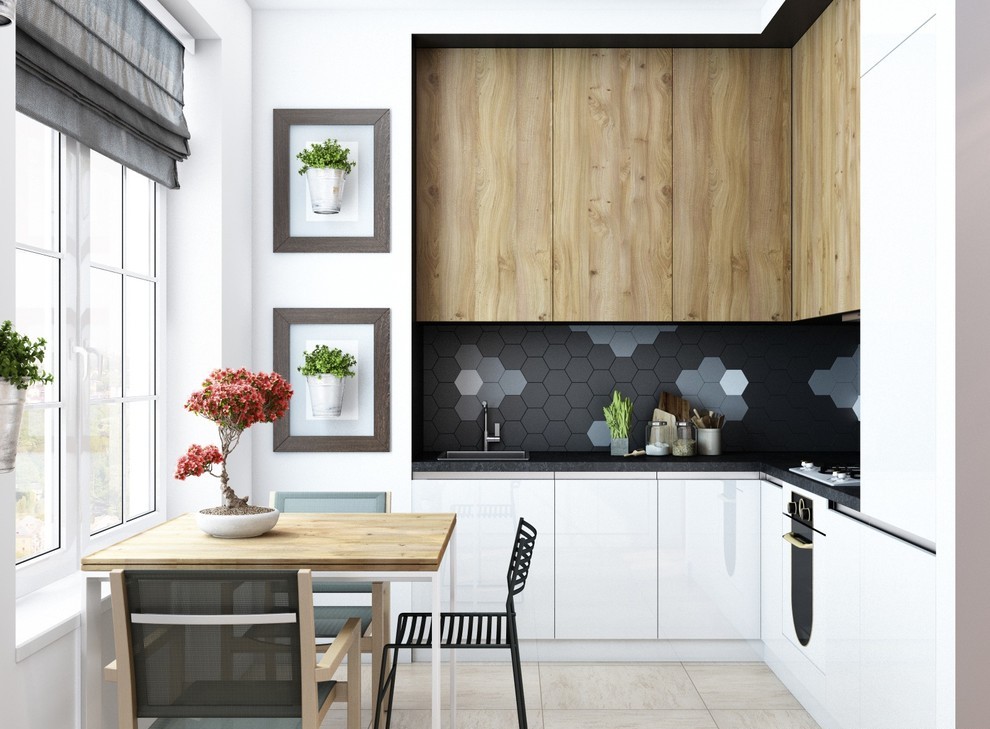 | Linear | All modular elements are located along the wall, creating a single line. This allows several people to cook at once, which is especially convenient when preparing for a big holiday or family dinner. | Narrow and elongated rooms. |