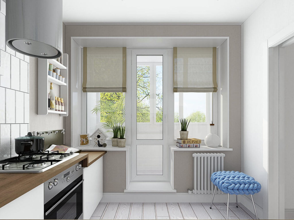 For small spaces, standard doors are impractical. They will only take limited meters. Therefore, you can completely remove the door and make an arch or install a sliding structure resembling a wardrobe. There are folding options resembling an accordion.
