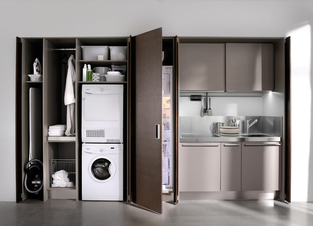 For a small room, you should carefully choose household appliances. It is better if it is built-in and multifunctional. Then you will receive models of compact sizes, convenient for placement.