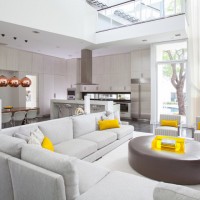 - Above the living area, spotlights are set in several levels to create a relaxing atmosphere.