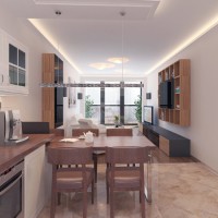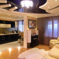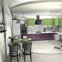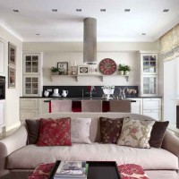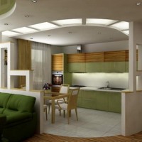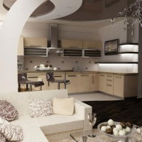 To design the interior of the space, it should be borne in mind that the kitchen area should be located next to the communications system. In the houses of new construction, the placement of "kitchen-living room" is considered standard and does not require the transfer of communications, does not interfere with residents from the lower floors.