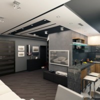 To decorate the interior of the space, it should be borne in mind that the kitchen area should be located next to the communications system