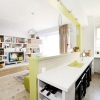 Tip: It is recommended to separate the place where food is prepared from the rest of the space by a bar counter, a long table, kitchen cabinets.
