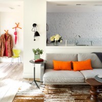 - The television is located in such a way that it can be conveniently watched from anywhere in the room: while cooking, and relaxing on the couch.