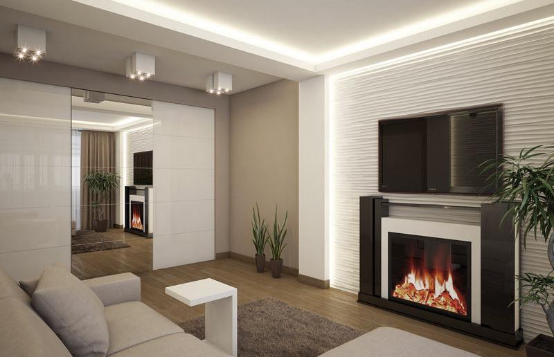 Instead of the usual furniture under the TV, you can place an electric fireplace