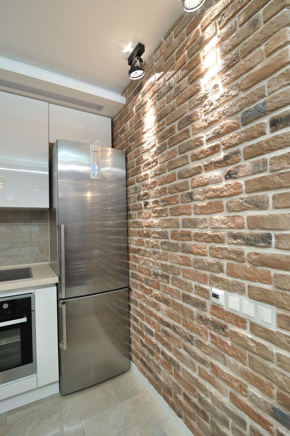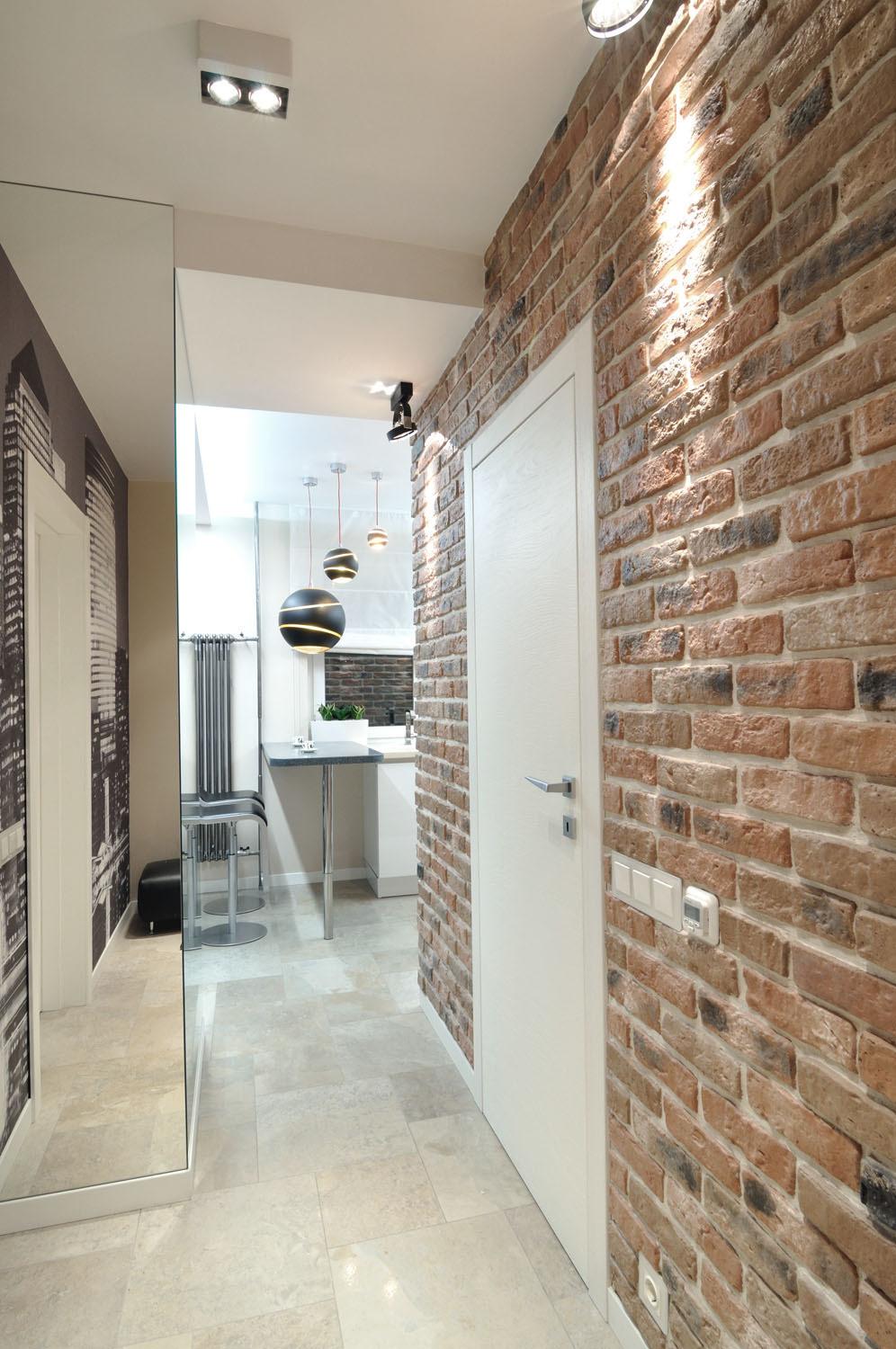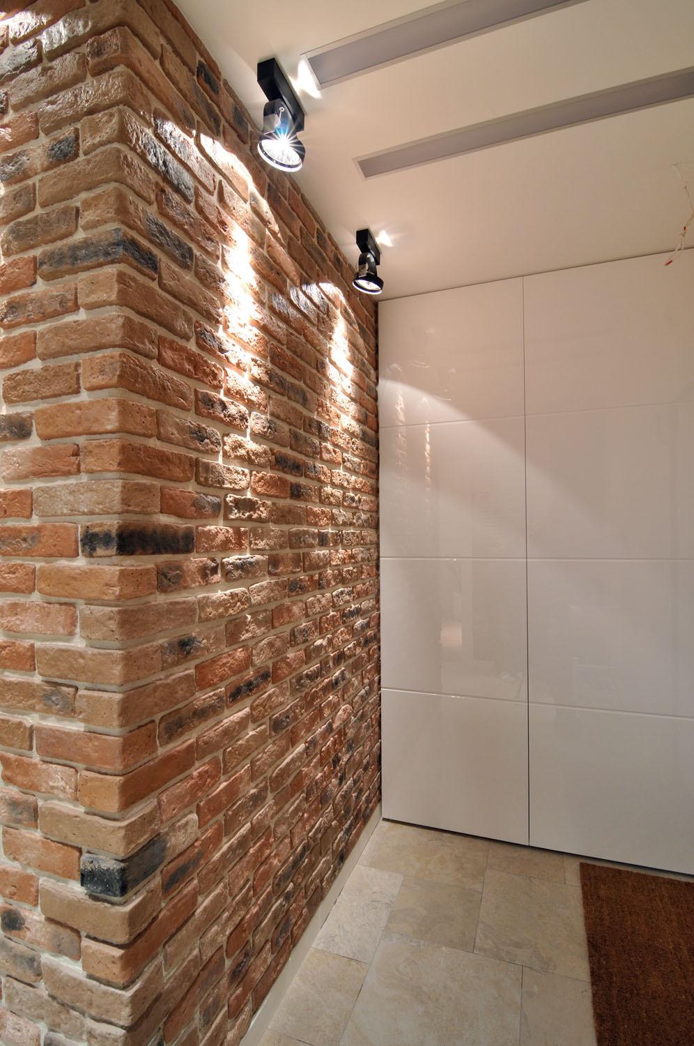 For the loft style, the perfect combination of aged brick with plastered walls in light shades