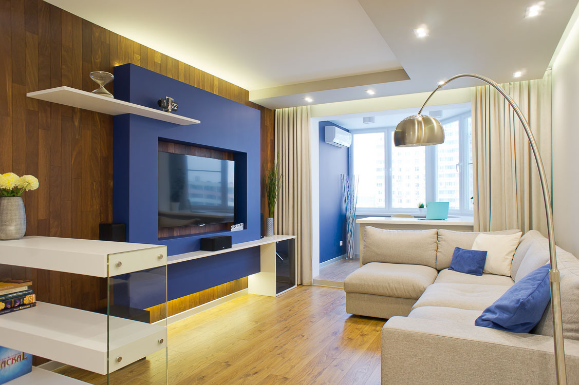 The modern design of a one-room apartment is quite comfortable housing with a fairly large space