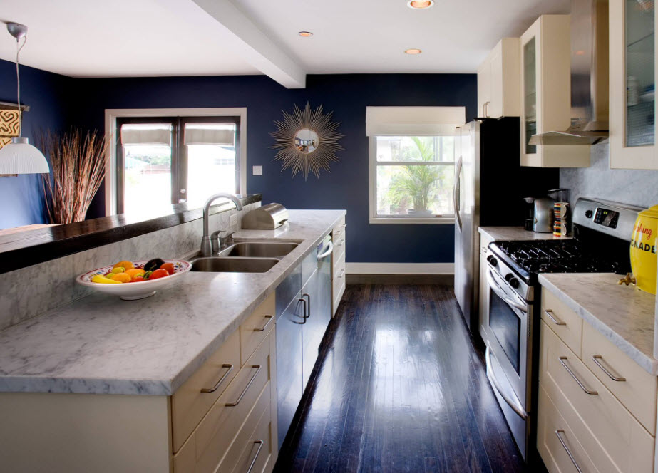 Everything that is used as a decor for walls, furniture, lighting, textiles should create a common image and concept in perception, while not contradicting convenience and functionality. But one must also work with imagination carefully - do not oversaturate the kitchen and litter the space. Follow the principle of ergonomics. You should not put the stove in the corner. This will cause a lot of inconvenience. The kitchen should be easily ventilated, have excellent ventilation and exhaust. It is necessary to exclude areas of accumulation of smell, soot, dampness. Be sure to treat the walls from insects and other pests to the final decoration and furnishings with furniture and appliances.