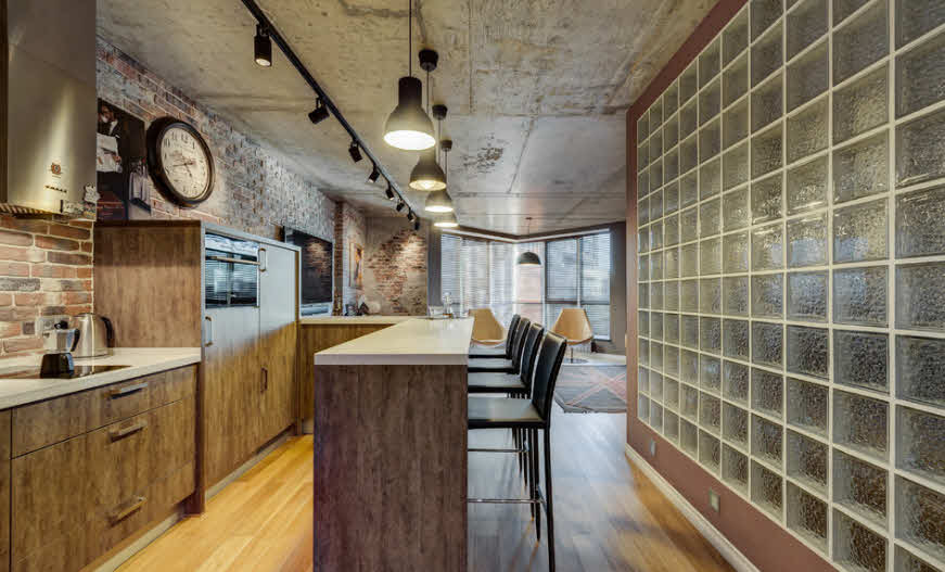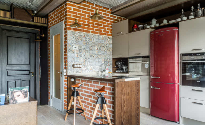 Brick walls give a special charm to the kitchen.