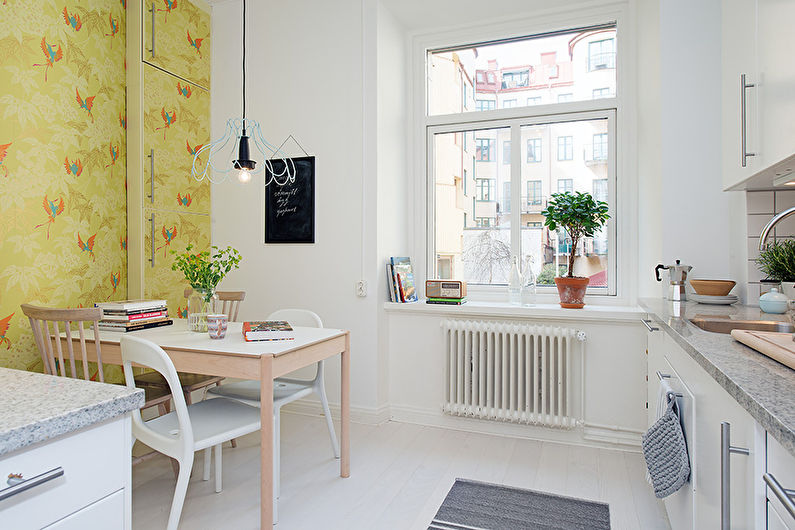 Light wallpapers will make the kitchen more spacious and make up the perfect backdrop for any decoration