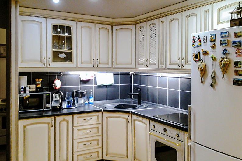 The corner kitchen is convenient to use, as the corner formed by it is ideal for the “working triangle”