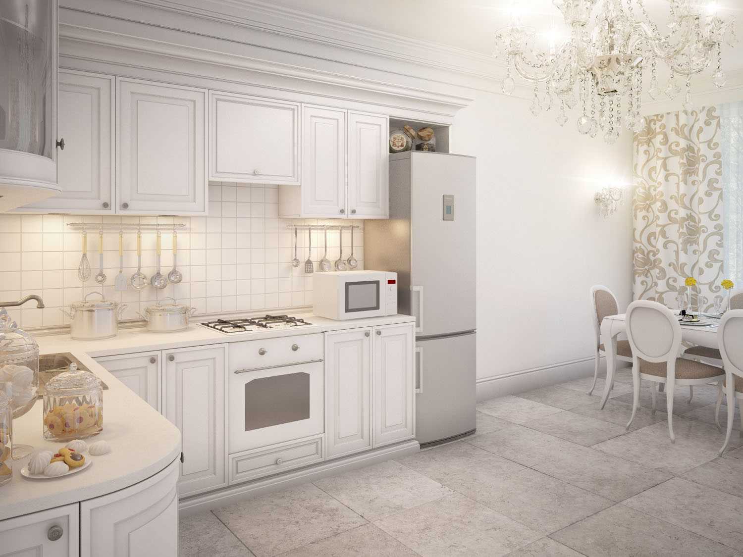 The interior of the luxury kitchen in white