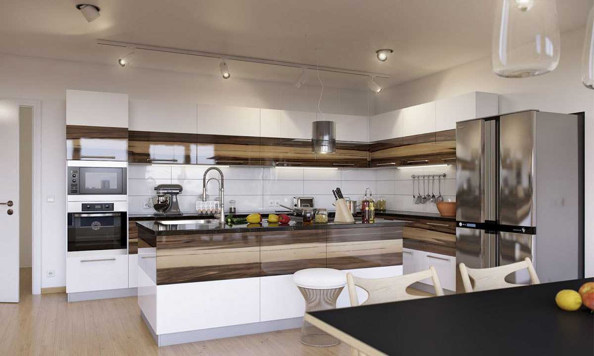 The interior of an elite kitchen is an important component of the entire kitchen design, which depends directly on the shape and size of the room. There are several layout options.