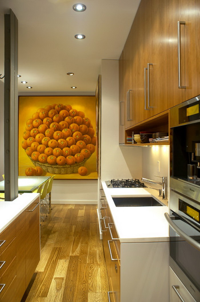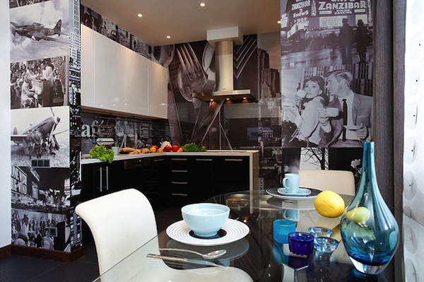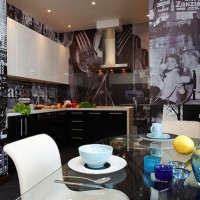 Sticking on one of the walls of the photo wallpaper will make the kitchen beautiful