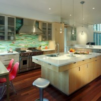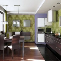 Photo-wallpaper in the cold shade kitchen will fill the room with air. Warm colors will make the kitchen brighter. It is worth noting that not all colors contribute to food intake. For example, black color can lead to digestive upset.