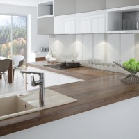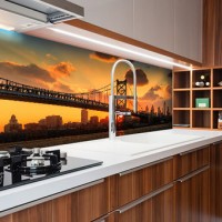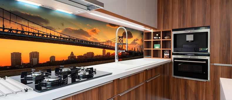 Unlike standard materials, large pictures allow you to make the kitchen original and individual. However, the solution is not very popular in the design environment, as with improper care it quickly fails. But if you purchase high-quality material on a non-woven basis with an upper dirt- and water-repellent layer, there should be no problems with cleaning and the duration of operation. The presented products do not absorb water, dirt and grease, are not afraid of mechanical influences and do not lose color under the influence of sunlight.
