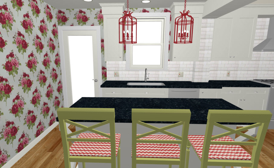 The catalog may include dark wallpapers with many small drawings. This option looks very impressive, but it will not work for a small room. At the same time, having completed this design, it will seem that a mess reigns in the kitchen all the time.For a small room, it is better to choose plain materials with large objects - berries, flowers and more. You can look at the catalog and find images of stairs or alleys - they will also help to increase the space.