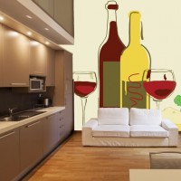 You can purchase self-adhesive murals in the kitchen. They are suitable even for uneven walls and do not require glue. Moreover, you can glue and peel them several times if something does not work out and there is a need for alteration.