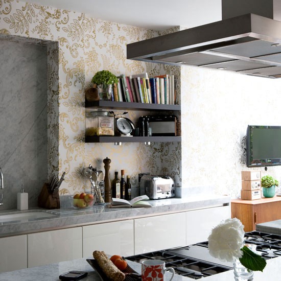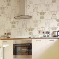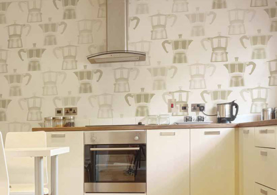 When placing wallpaper in the cooking zone, do not use materials whose top layer is made of sand, silk or linen. Photo murals are unlikely to withstand the load in the quality of water and high temperature. But if you put glass on top of them, the products will last an impressive period.