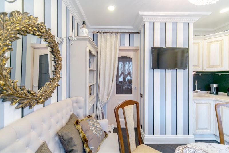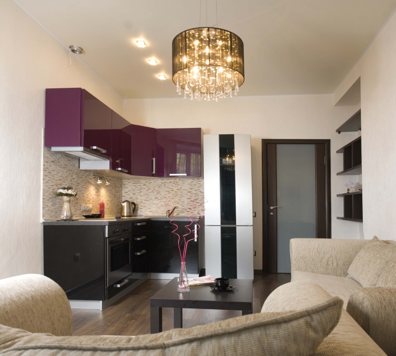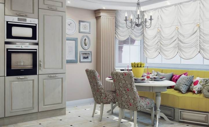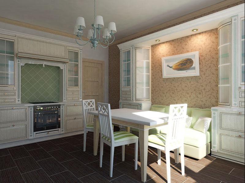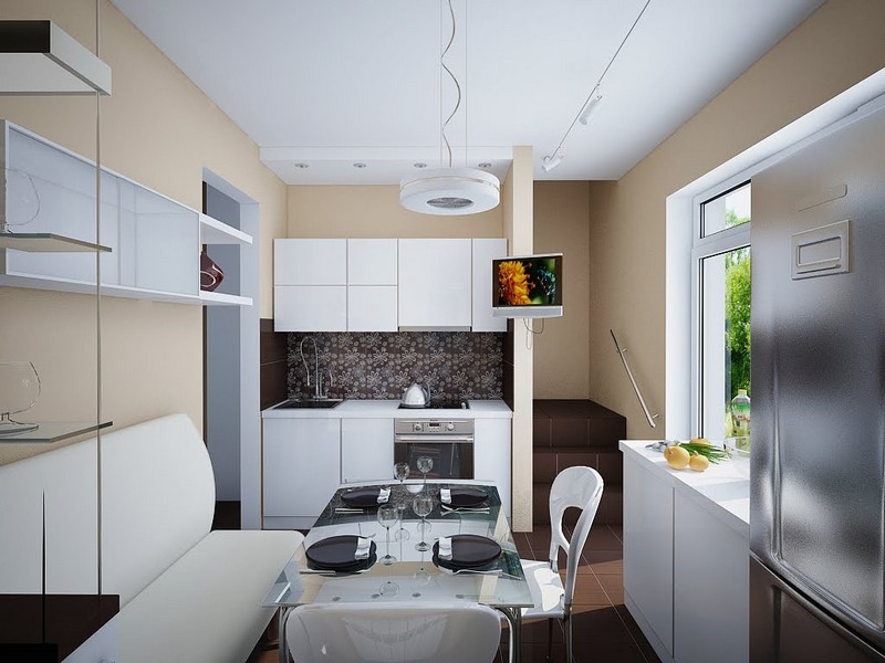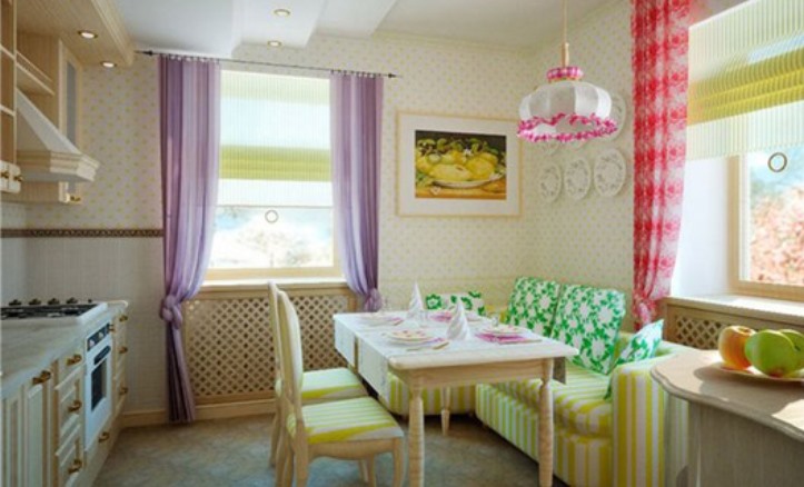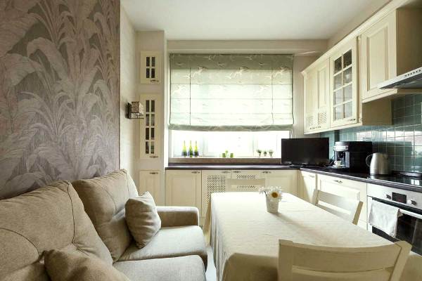 - Small kitchens. For small rooms, light furniture is suitable (this applies to a sofa, chairs and a table). Also, gentle tones will help to make the room brighter and more sunny, and small accents in the form of a picture or curtains will complement the interior.