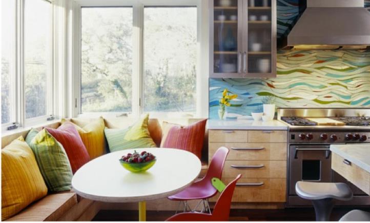 Such an additional element as a pillow on a sofa will always add a little idyll to the whole home atmosphere of any kitchen or dining room.