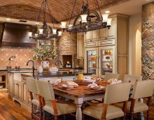 If square meters of the room allow, then the recreation area can be decorated with artificial stone. This will add sophistication to the kitchen and make it more chic.