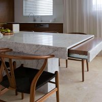 But with the help of this element you can significantly save the space of the room. In small kitchens of apartments of the Khrushchevka type, it will help to combine a dining table with a functional surface. This will unload the room and make it more spacious.