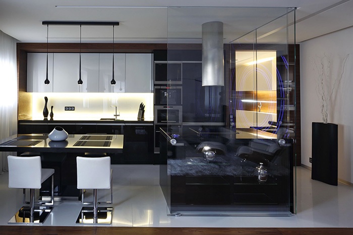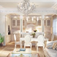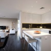 An apartment with a large kitchen will highlight all these areas and at the same time connect the area into a single whole.